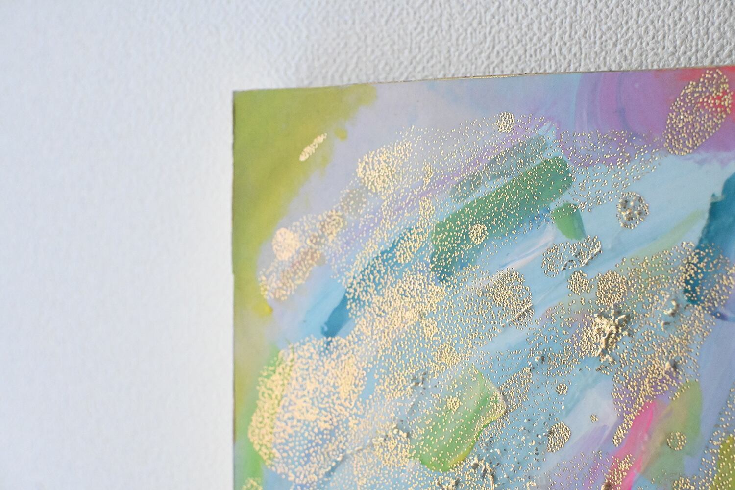 Artist: 大岡弘晃 Title: 色は命として NO6 Size: W14㎝ x H18㎝ x D2㎝ Material: 木製パネル、紙、染料、顔料、金彩箔 Year: 2025 Signed *写真はできる限り実物の色に近づけるよう徹底しておりますが、 お使いのモニター設定、お部屋の照明等により実際の商品と色味が異なる場合がございます。