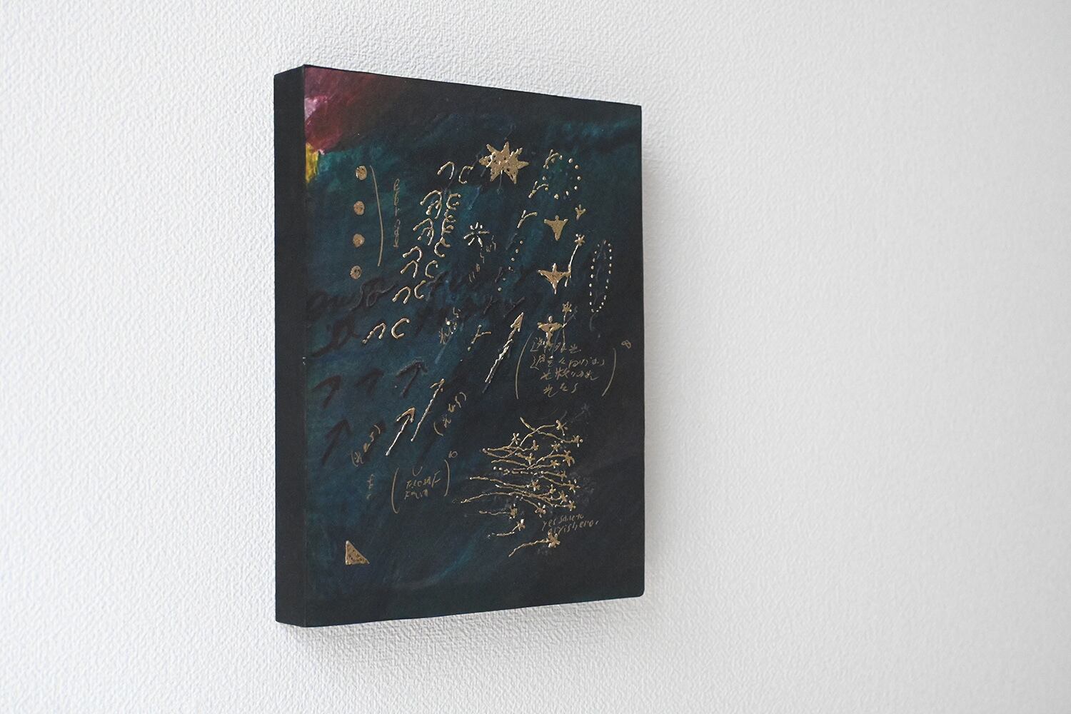 Artist: 大岡弘晃 Title: 図説(お祈り)あなたたちに Size: W14㎝ x H18㎝ x D2㎝ Material: 木製パネル、紙、染料、顔料、金彩箔 Year: 2025 Signed *写真はできる限り実物の色に近づけるよう徹底しておりますが、 お使いのモニター設定、お部屋の照明等により実際の商品と色味が異なる場合がございます。