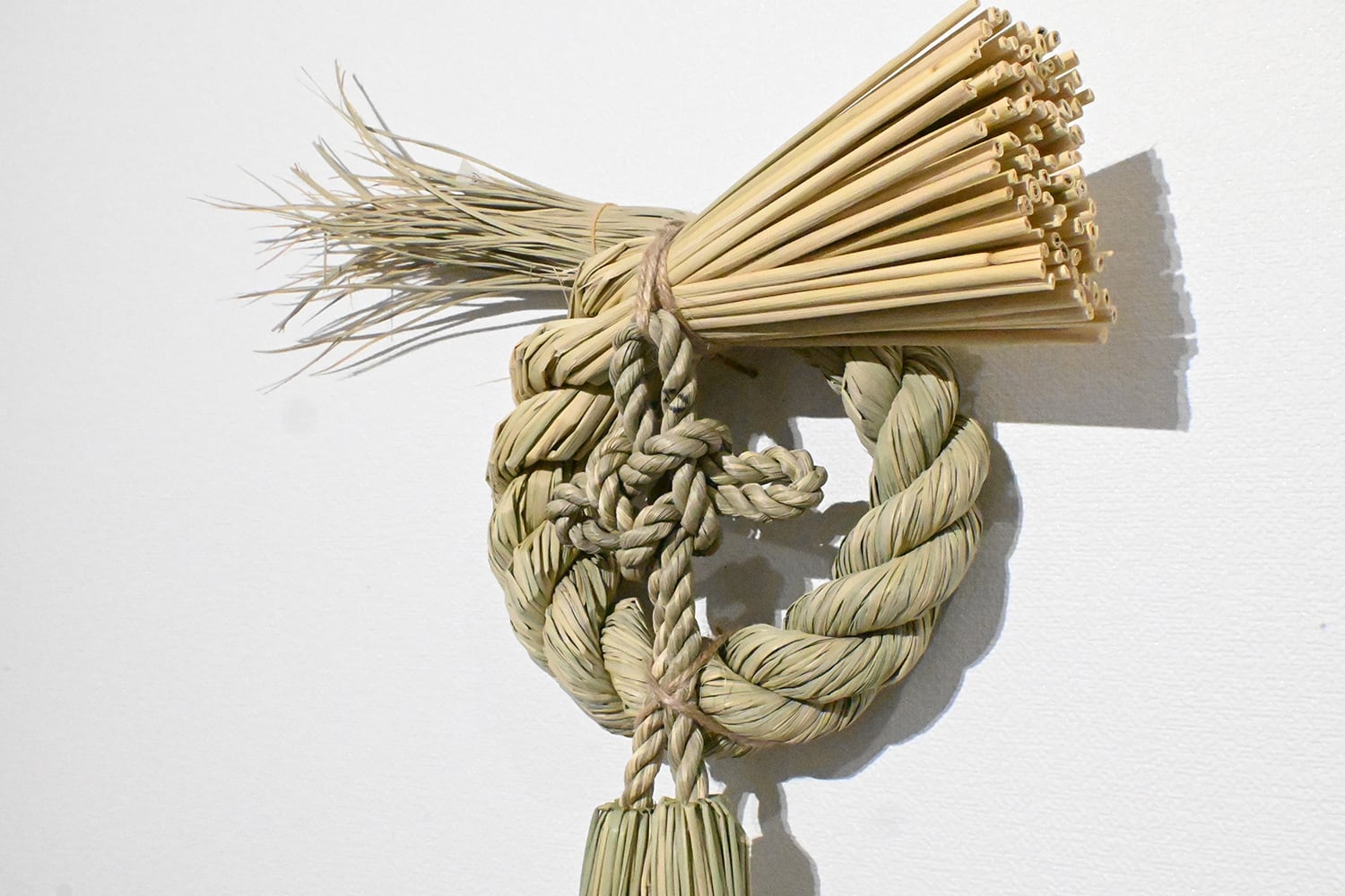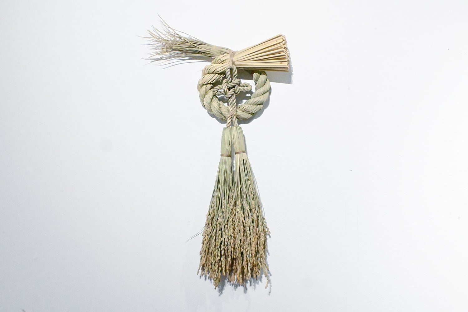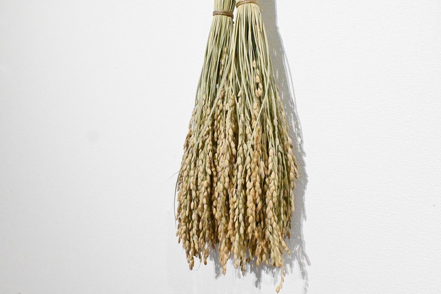 うるち米(ミツヒカリ)ともち米(クレナイモチ)の穂を使い分けてつくられたしめ飾りです。