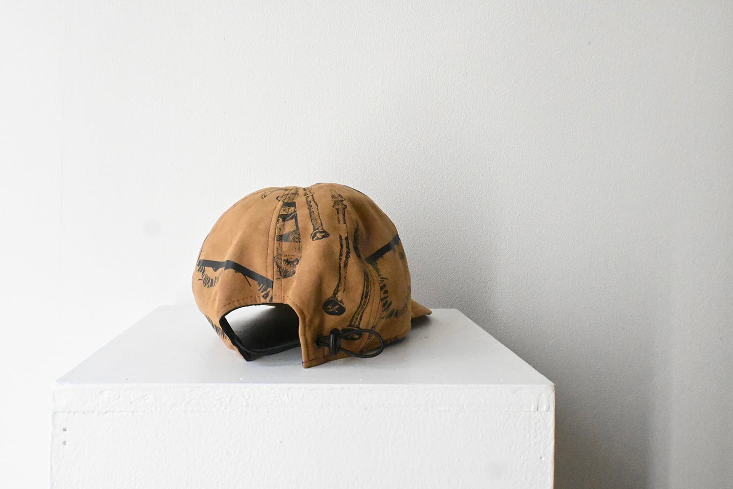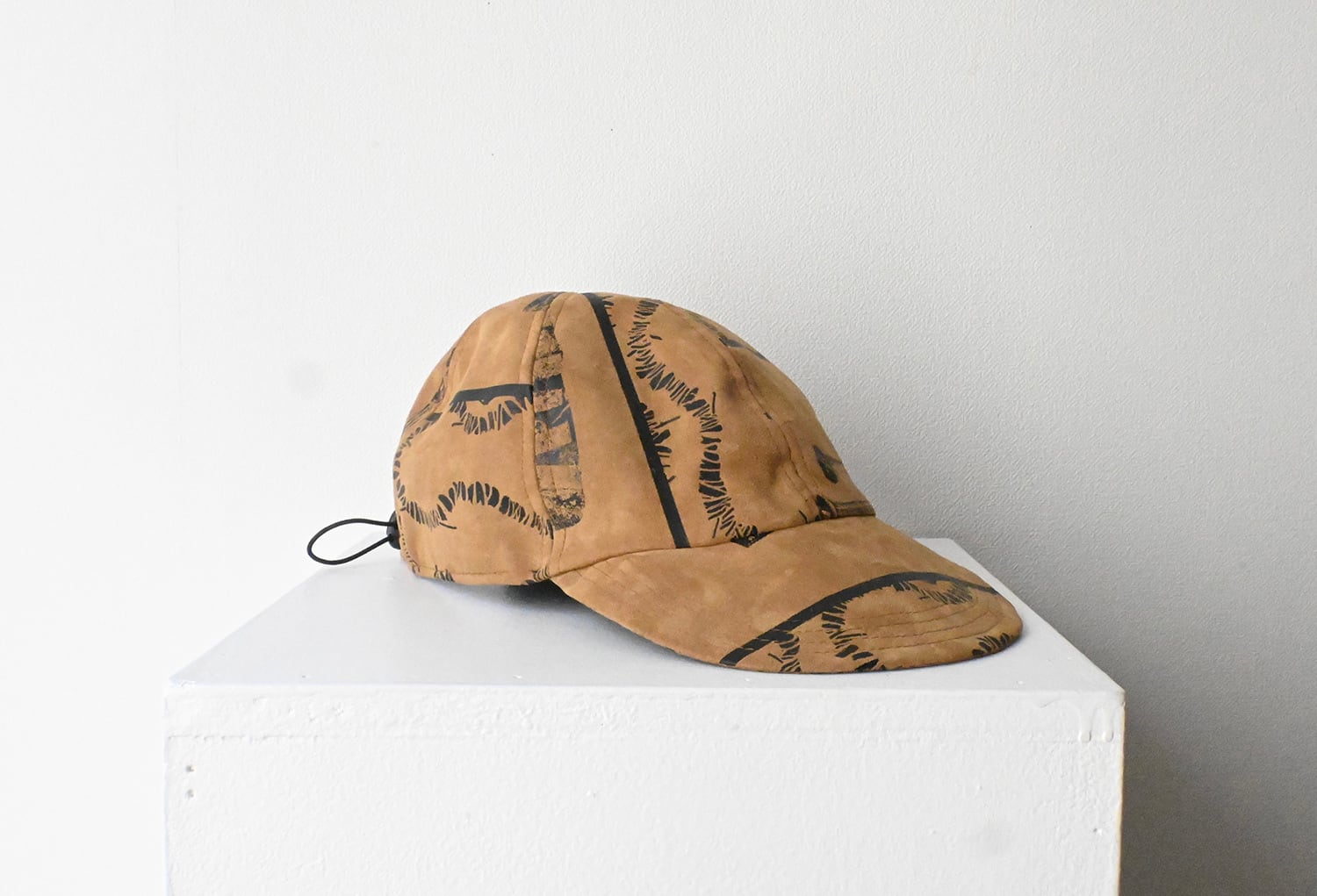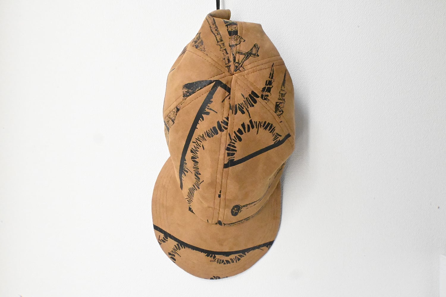 金子自らがシルクプリントした生地をランダムに裁断し、縫製された一点物の帽子です。
