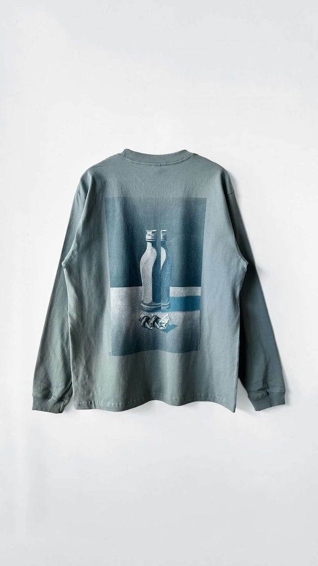 伊藤 潤さんの展示会「BETWEEN BOUNDARIES」限定オリジナル・ロングスリーブTシャツです。展示会のメインビジュアルに起用された作品'Bottle and paint tube'を背にプリント。