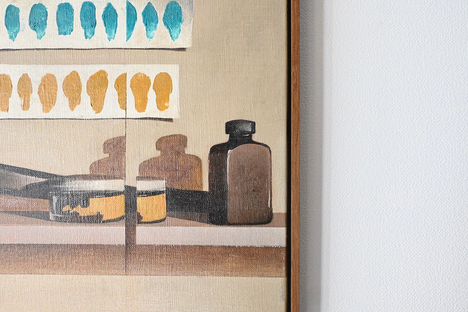 JUN ITO|still life 'wooden hammer, bottle, color sample #2'