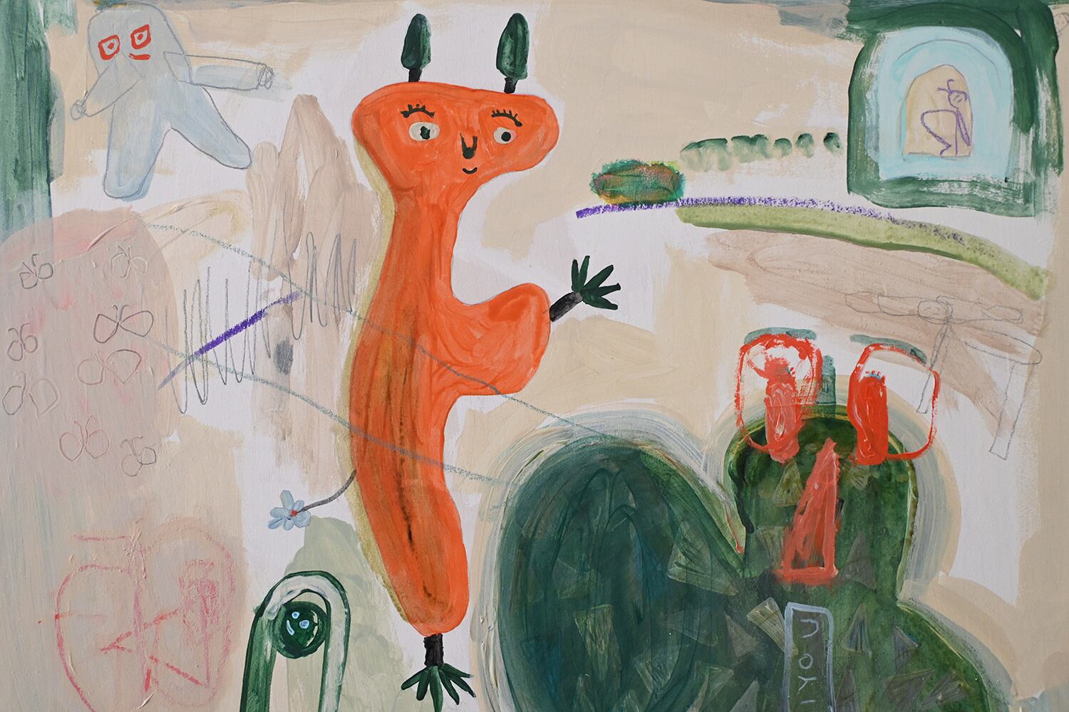 Material: Acrylic, Oil pastel, Colored pencil on Wood panel