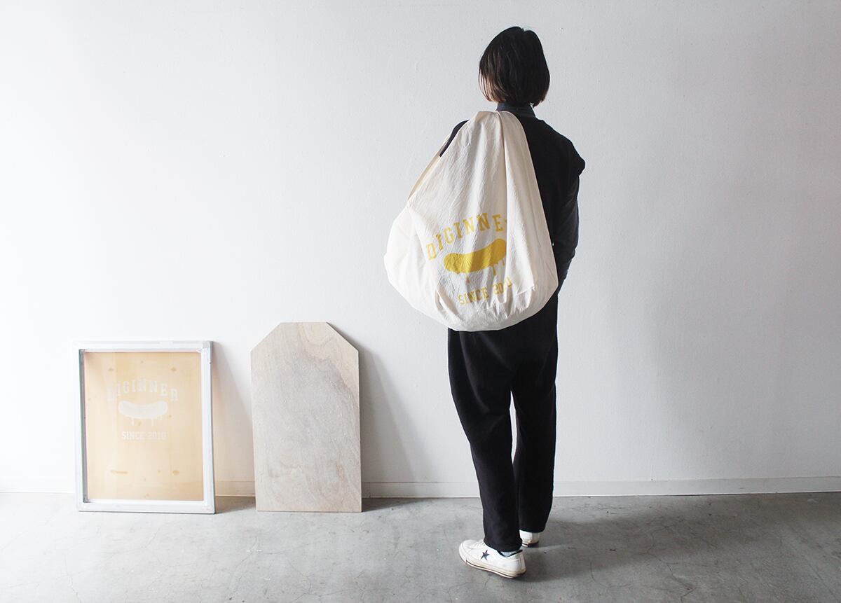 ディギナー・オリジナルのあずま袋は、本来Nadeshiko Brooklynの焚火台(MAGARA ART EQUIPMENT)を収めるために製作した大きな袋です。しかし焚火台のような大きな荷物だけではなく、沢山の荷物を持ち運ぶにも大変便利なことに気付きました。袋にはDIGINNERのオリジナルロゴを一枚一枚シルクプリントしたことでよりカジュアルなルックスに。しっかりと縫製されており耐荷重にも優れています。