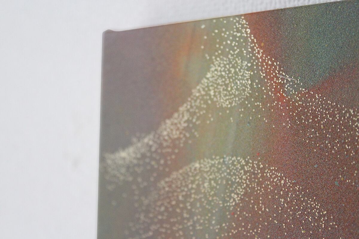Material: acrylic, dye, gold leaf on paper and PVC sheet